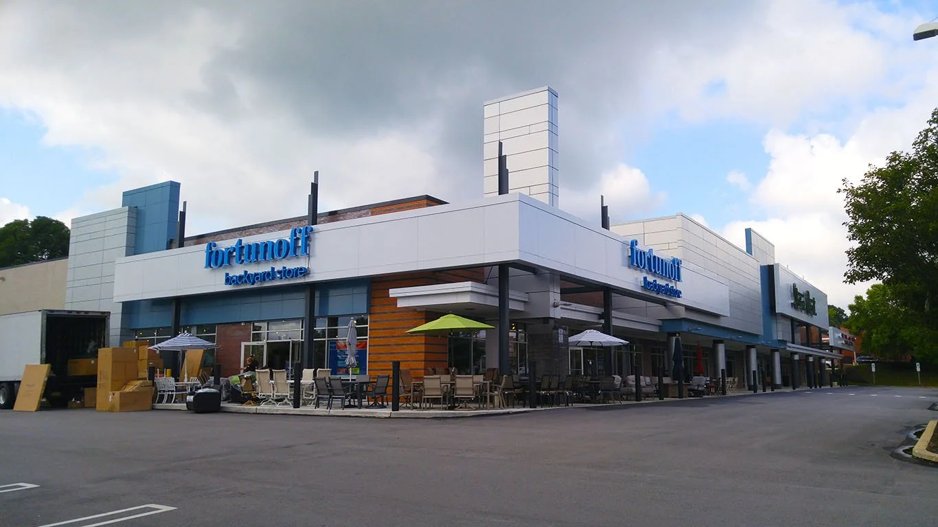 Facade renovations and demising of a former 50,000 sf Sports Authority to create a multi-tenant retail building.